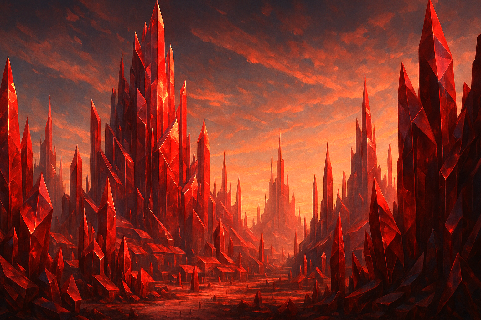 三十分ほど進んだころ、赤い塀が視界に飛び込んできた。塗料の赤ではない。血の色にも似て、けれどもっと乾いた、不自然な赤。人間の街にしては妙に整然としていて、地図を見れば「赤い街」と書かれていた。墨のかわりに赤い絵の具を垂らしたような文字だった。
