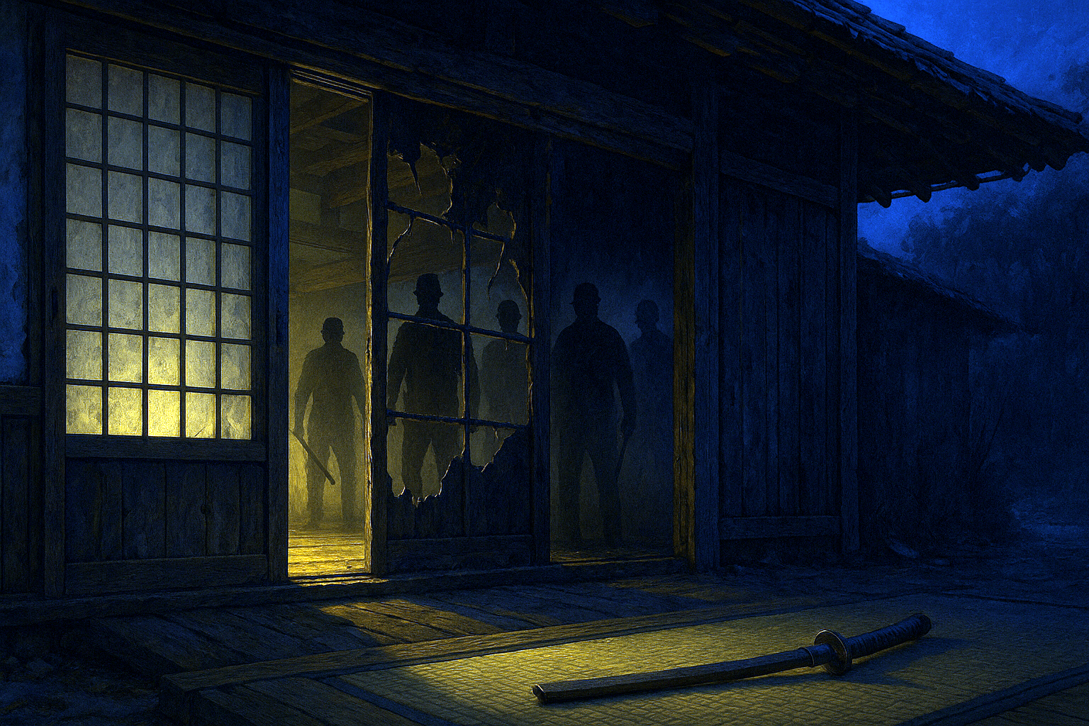 師範の家にじいさんが居候していたその晩、玄関が激しく叩き割られ、八人の男が乱入してきた。顔を布で覆い、手には鉄の棒。