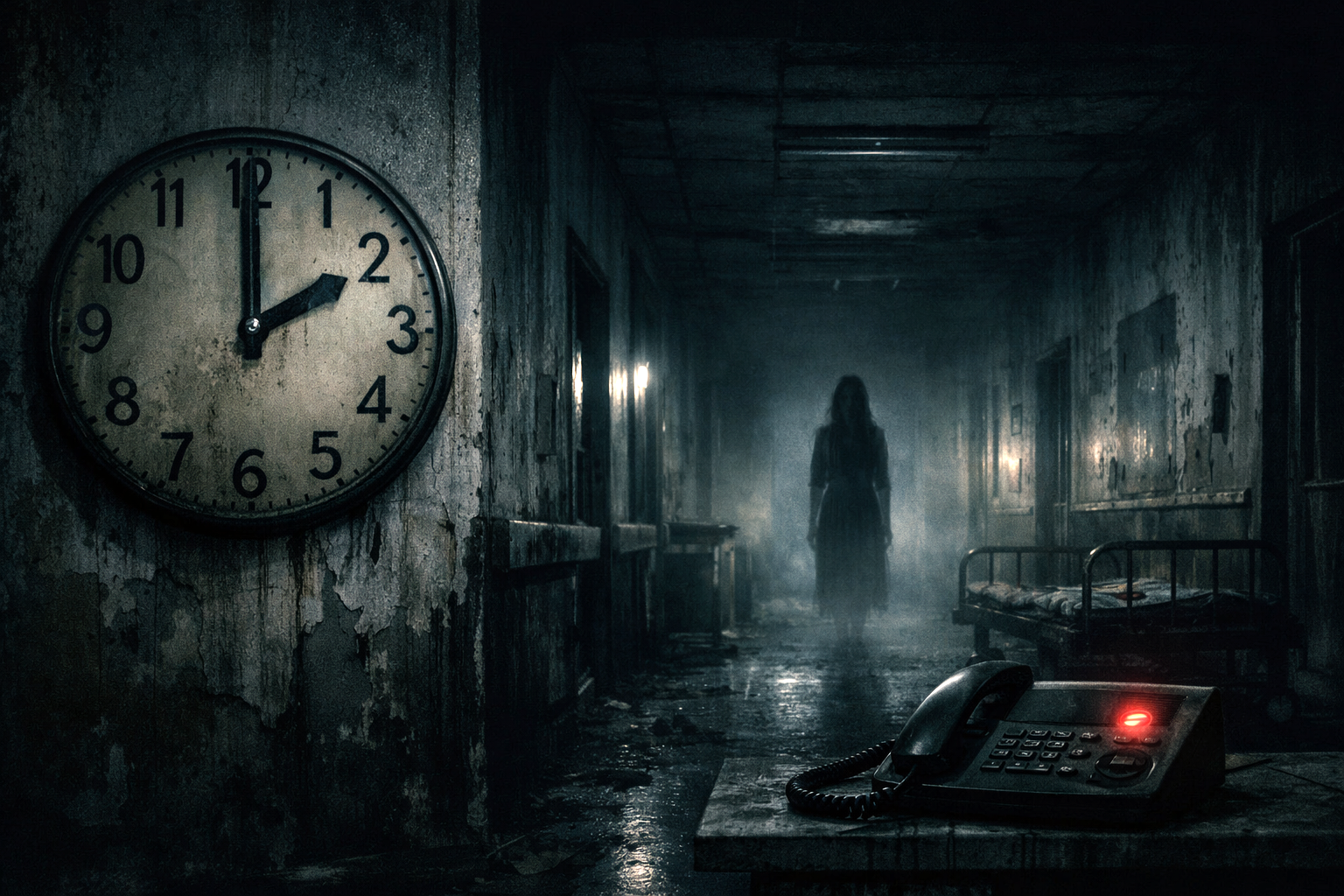 霧が低く垂れ込め、白い三階建ての建物が浮かび上がる。割れた窓、剥がれた外壁、黒く口を開けた玄関。かつて病院だったそれは、今はただ形だけが残った空洞だった。
