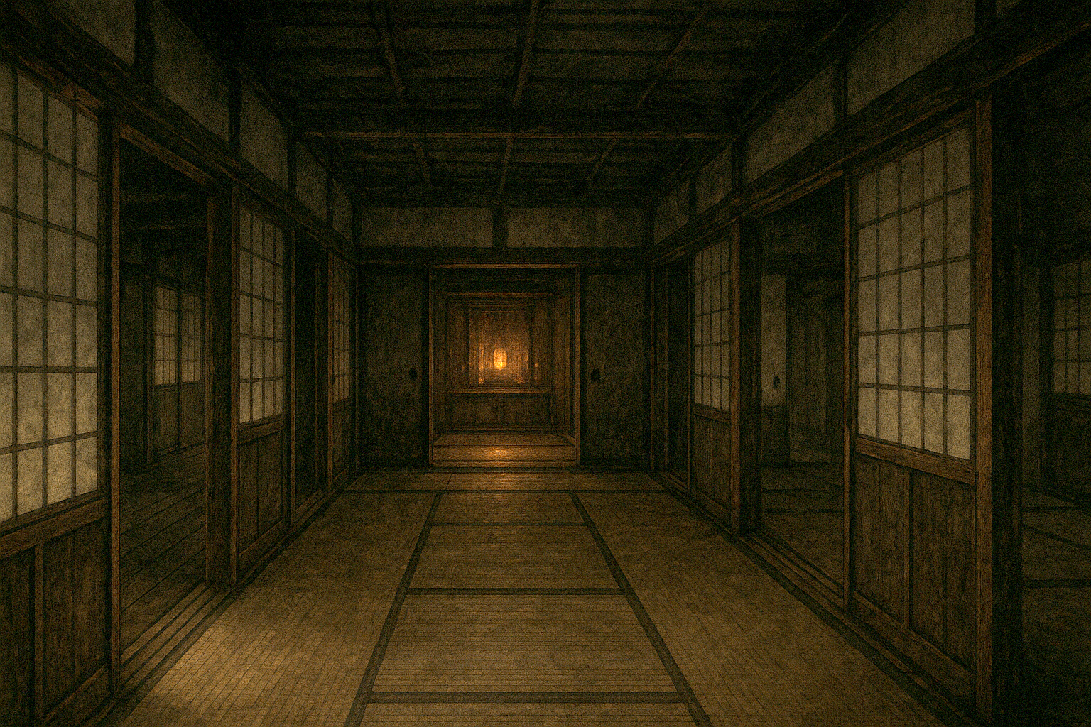 実家は、地方の古い日本家屋だった。間口は広く、奥行きはやたらと長い。廊下は板が痩せ、踏むとぎい、と鳴る。障子は茶色くくすみ、窓から入る光はほとんど濁った色をしていた。昼間でも、天井の梁が影を落とし、部屋の隅は闇に溶けていた。だから夜になると、家はさらに重く沈み込み、トイレに行くにも勇気が要った。