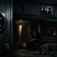 行ってみると、玄関の曇りガラスの戸ごしに外にだれかが立っているようにも見える影がある。