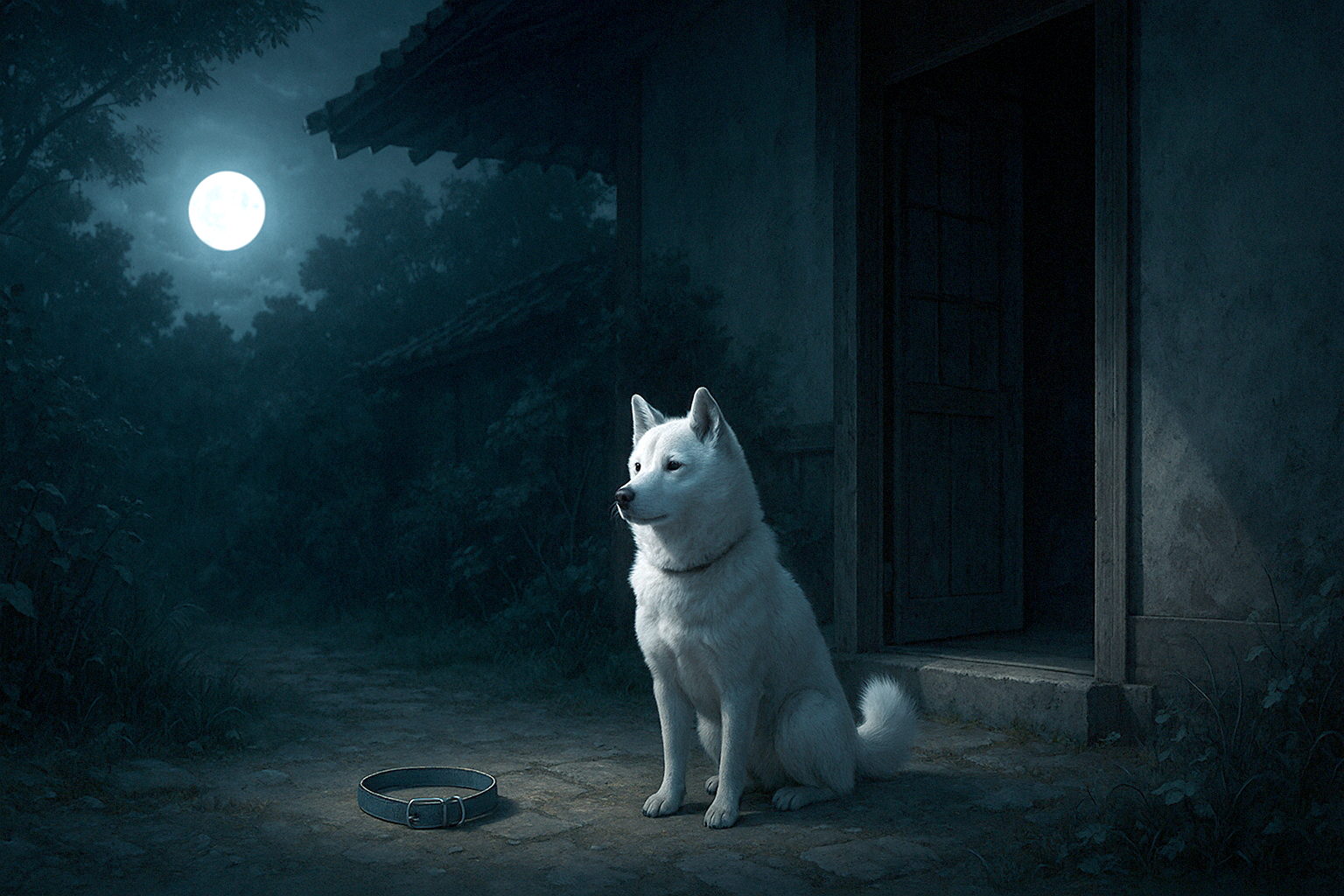 そして今でも、祖父の家の玄関を開け放つと、夜風に混じって白い毛並みがふわりと視界の端を掠めることがある。振り向いても、そこには誰もいない。ただ、胸の奥で確かに聞こえるのだ。「ワン」と短く、懐かしい声が。