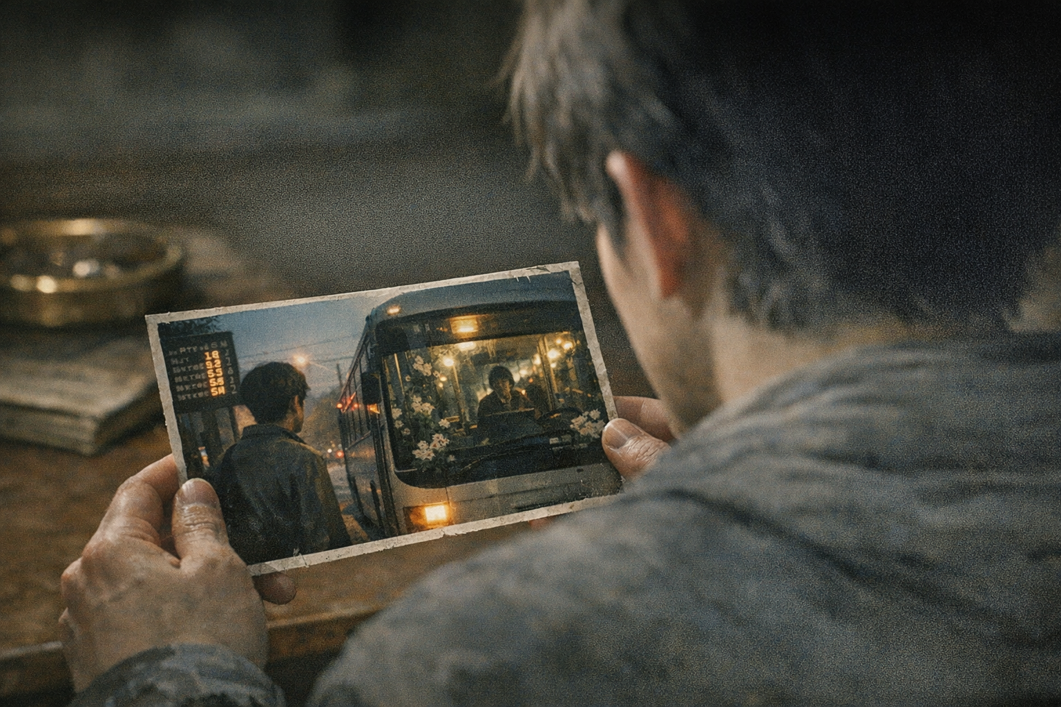 帰国してから、その旅の写真を整理した。停留所で撮った写真が一枚だけ残っていた。夕方の道路と、時刻表と、少し離れて立つ清助の横顔が写っている。