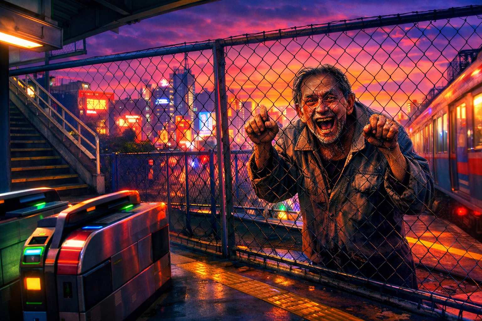 電車が加速し、影は後方へ流れていった。最後に見えたのは、フェンスを強く揺らす腕の動きだった。