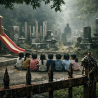 小学校四年生の七月だった。 教室はいつも少し濁っていた。窓を開けても風は入らず、誰かの視線だけが、黒板の端や机の下を這っていた。 万里は、その視線の真ん中にいた。 首の病気だと聞いた。詳しいことは知ら ...