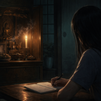 今でも、母がその夜のことを語り始めると、仏壇の蝋燭は必ず細く揺れる。 風がないときでも、炎だけが呼吸を思い出したように縮み、伸びる。 誰かが、耳を近づけているような揺れ方だ。 子どもの頃、私はそれを気 ...