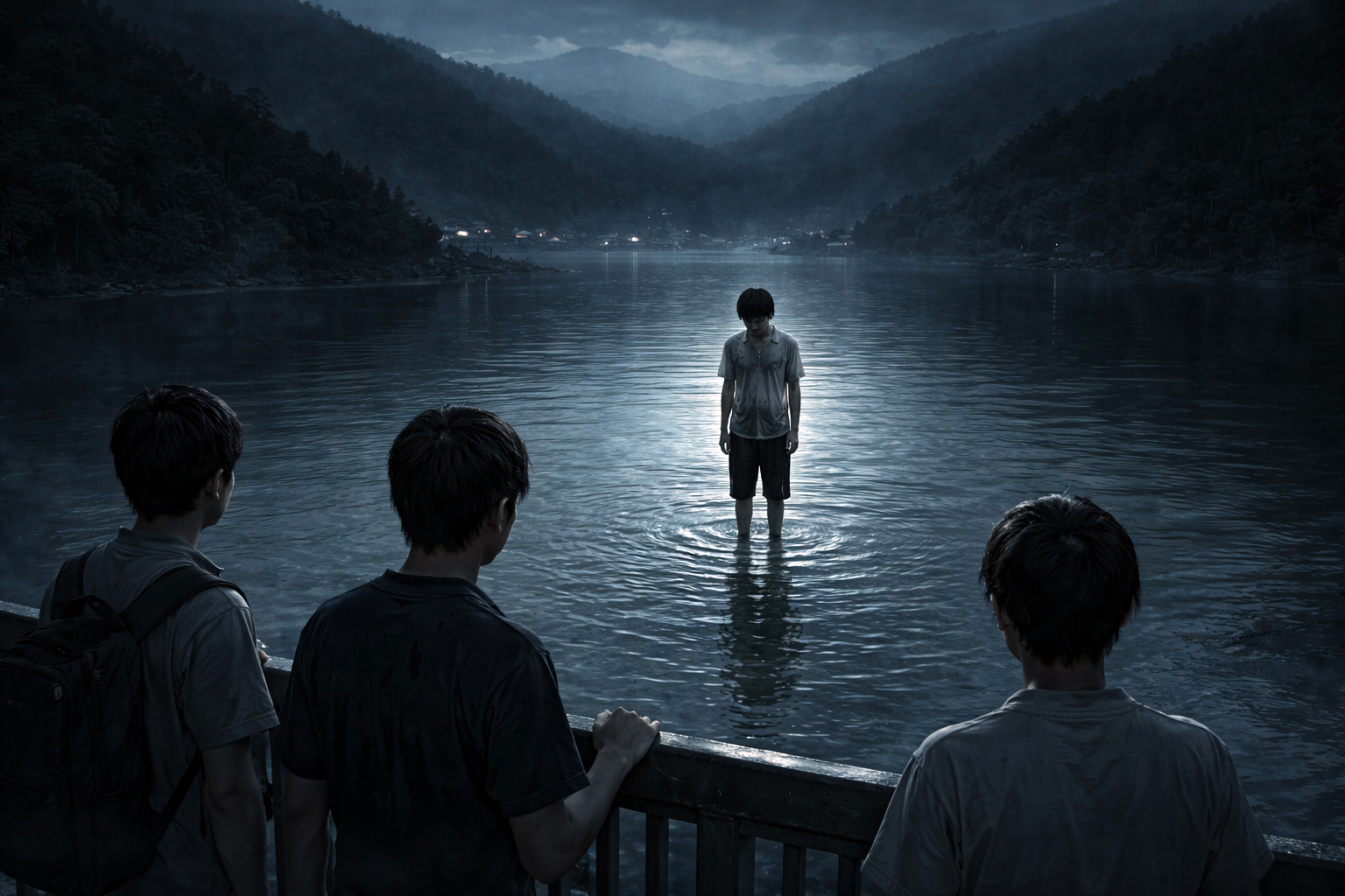 年月が過ぎ、村はダム建設で消えた。家も学校も神社も、水の底だ。俺たちも別々の町で暮らすようになったが、夜になると必ず思い出す。林の奥で名前を呼ぶ声。振り返ったときの、あの顔。