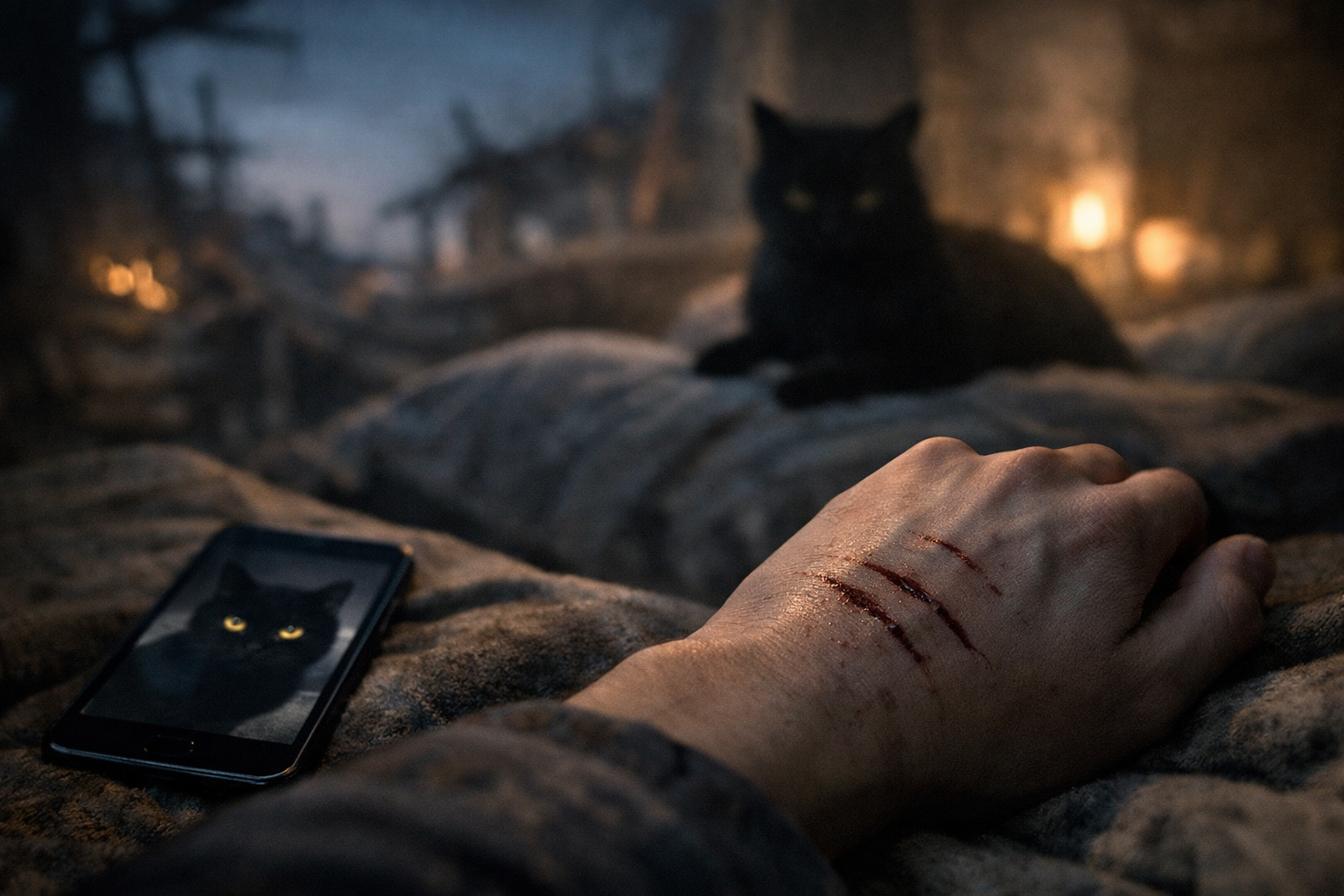 部屋には俺しかいない。爪を立てた覚えもない。それでも、その形を見た瞬間、別の可能性は浮かばなかった。昔、あの猫に本気で怒らせたとき、まったく同じ傷を負ったことがある。その感触まで、はっきりと思い出した。