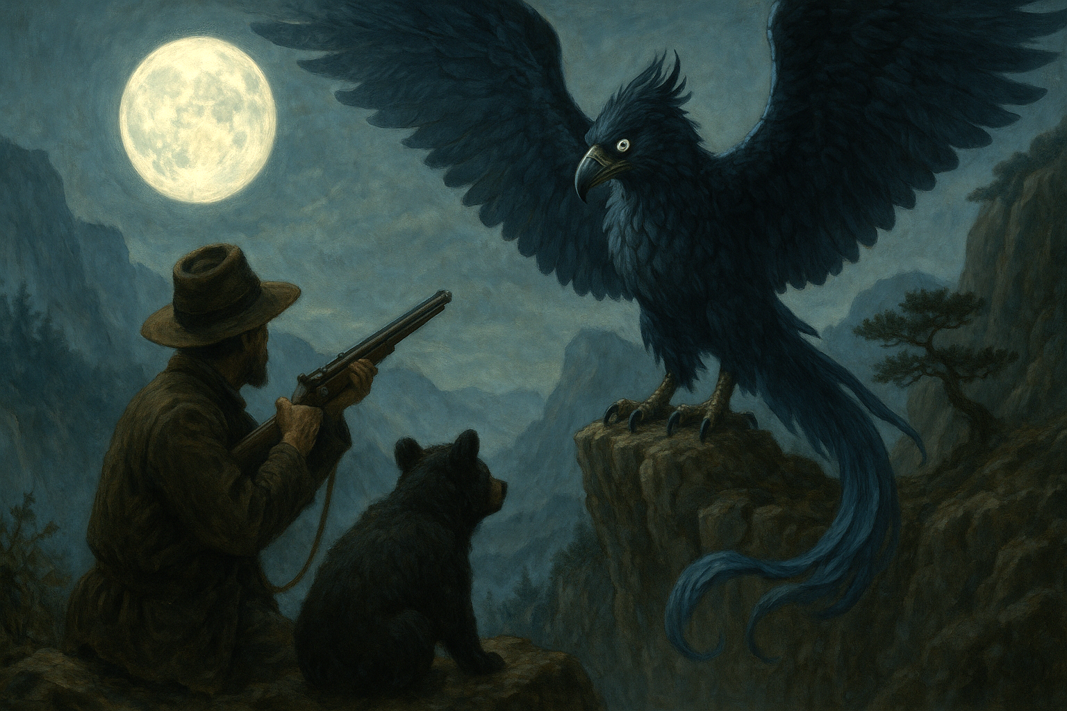 それから半年後。ある日、奴は再び風を嗅ぎ、今度は崖の縁へと私を誘った。見上げれば、岩棚に巨大な鳥の巣があった。中には鶏ほどの大きさの雛がうごめき、巣の端には、まだ新しい鹿の死骸が転がっている。巣全体が異様に大きく、枝と骨で組まれているのがはっきりわかった。