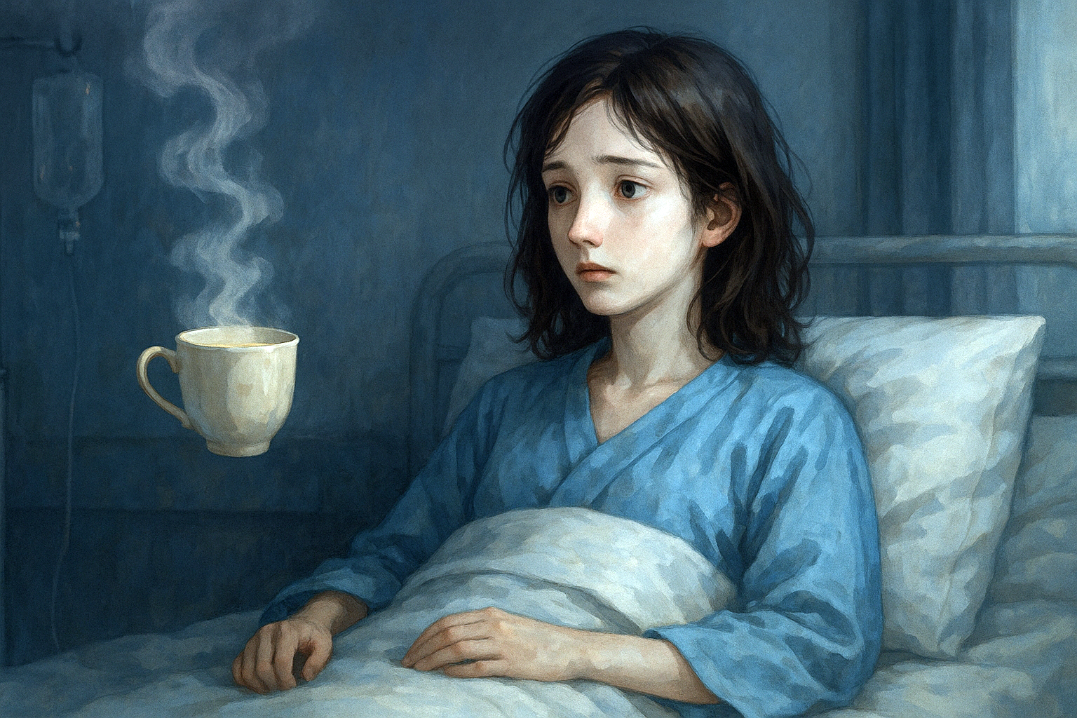 二日間、水すらまともに飲めず、ぼんやりと天井を見ていた。耳は自分の心臓の音ばかり拾い、世界の音は遠くの泡のようにかすれていた。