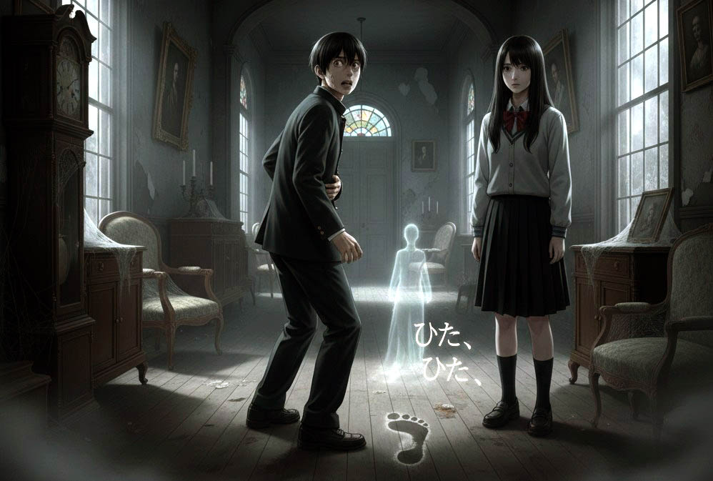 俺は思わず振り返った。誰もいない。だが床の埃の上に、濡れたような足跡が一つ、俺の真後ろにあった。