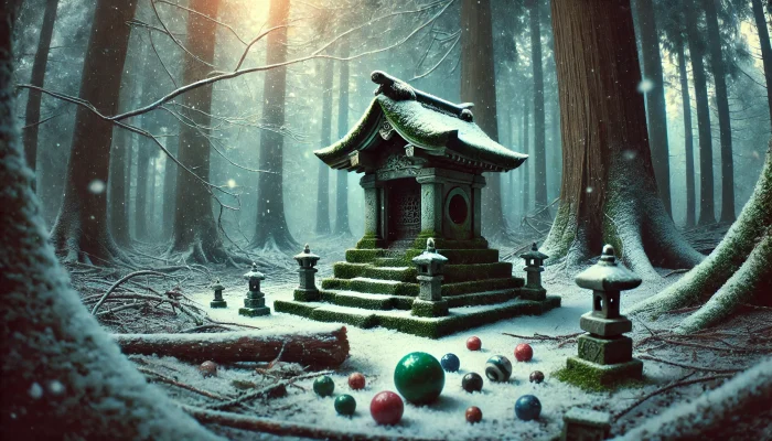 その日から、不思議とあの秘密基地のことを語るとき、誰も怖がったりはしなくなった。ただ、静かに「神様の家で遊んでしまった子供時代」の記憶として、胸に残っている。そしてビー玉は今も机の引き出しにある。時折手にすると、あの冬の日の光と空気が蘇るのだ。