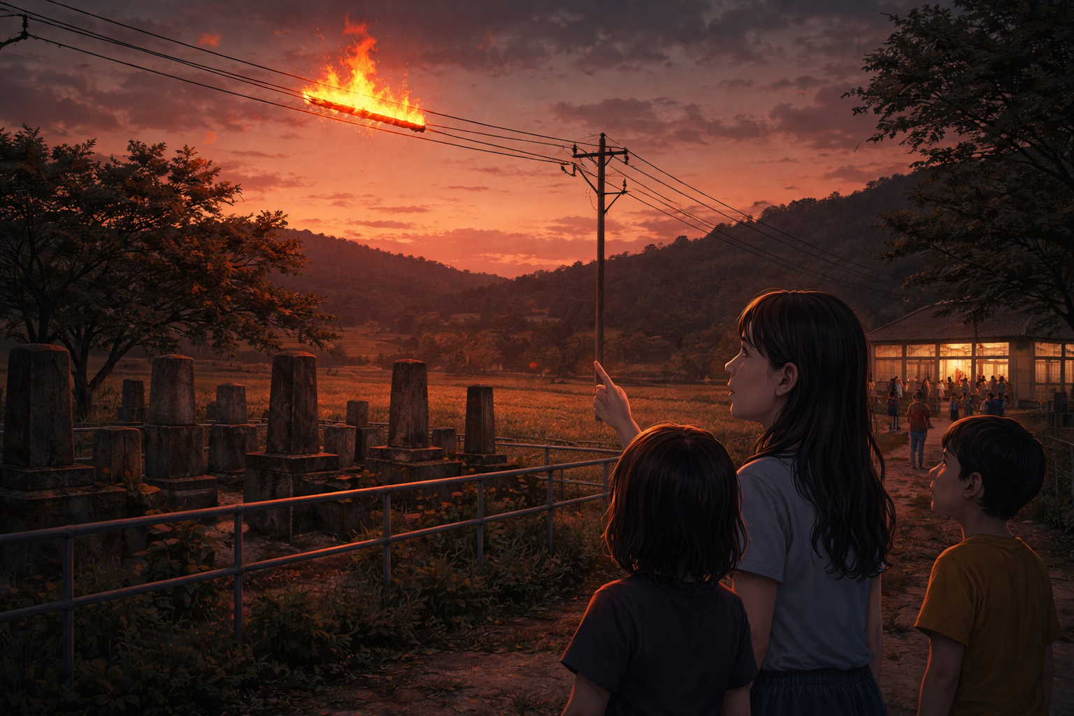 悔しくて、塾が終わったあと、私は姉と畑の中に入った。電線の真下を探した。何か落ちていないか、燃えかすはないか。けれど、そこには何もなかった。灰も、焦げ跡もなく、ただ夕風に揺れる葉の音だけがあった。