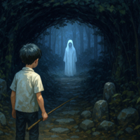 振り向くと、そこには五~六歳ほどの子どもが立っていた。おかっぱ頭に古い着物を身にまとい、性別も分からないが、どこか不気味なまでに整った顔立ちだった。