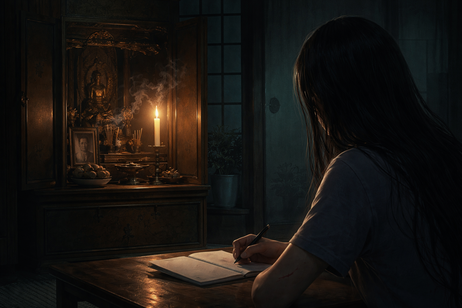 今でも、母がその夜のことを語り始めると、仏壇の蝋燭は必ず細く揺れる。