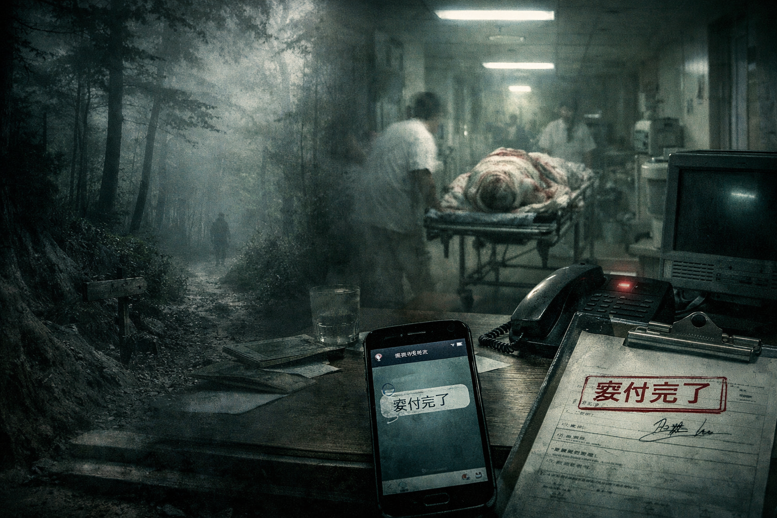 病院からの着信履歴が一件。留守電には何も入っていない。ただ、遠くで風の音のような、擦れる音が続いていた。