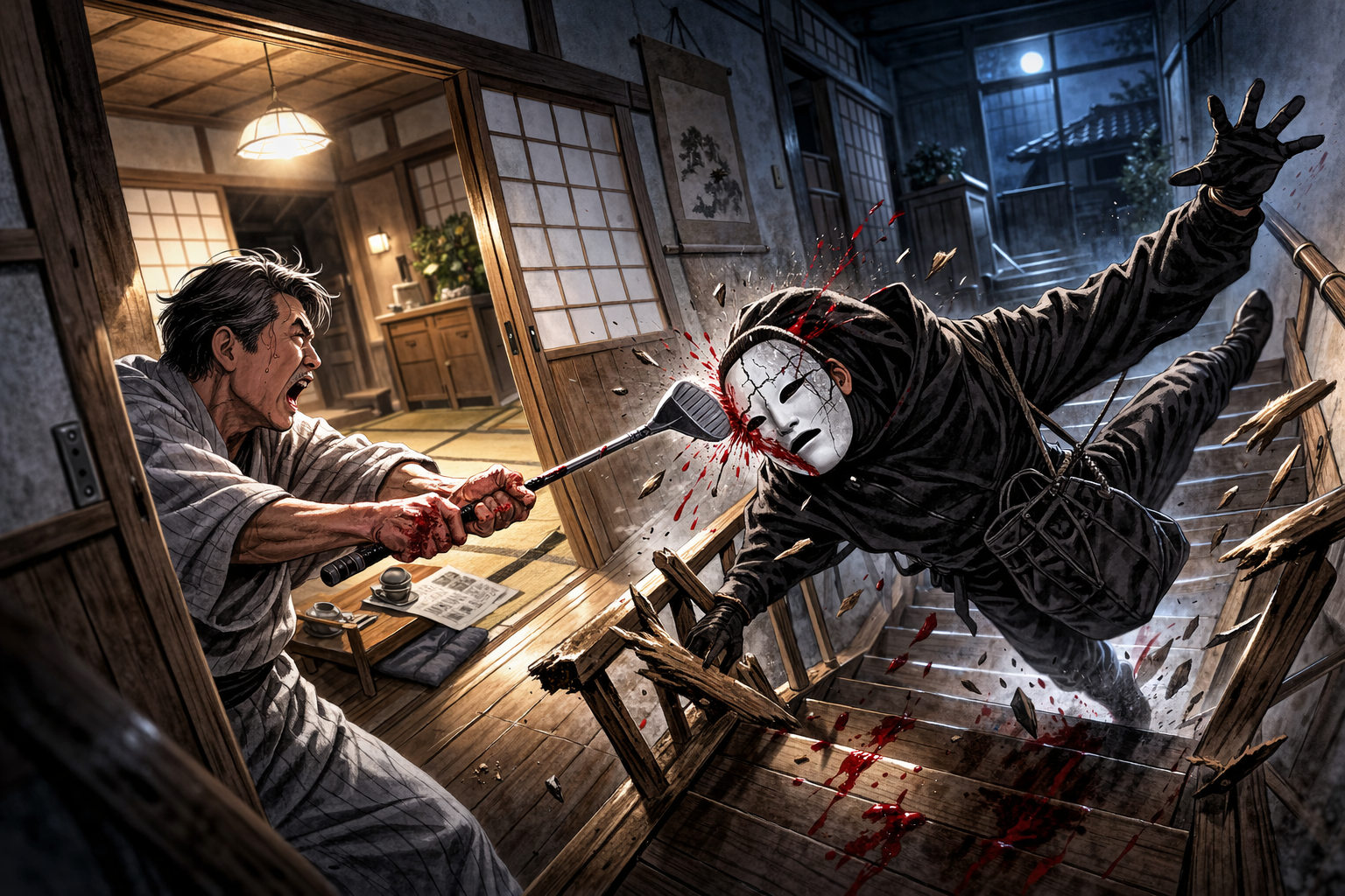 驚いた店主は、廊下に立ててあったゴルフクラブを手に取り、