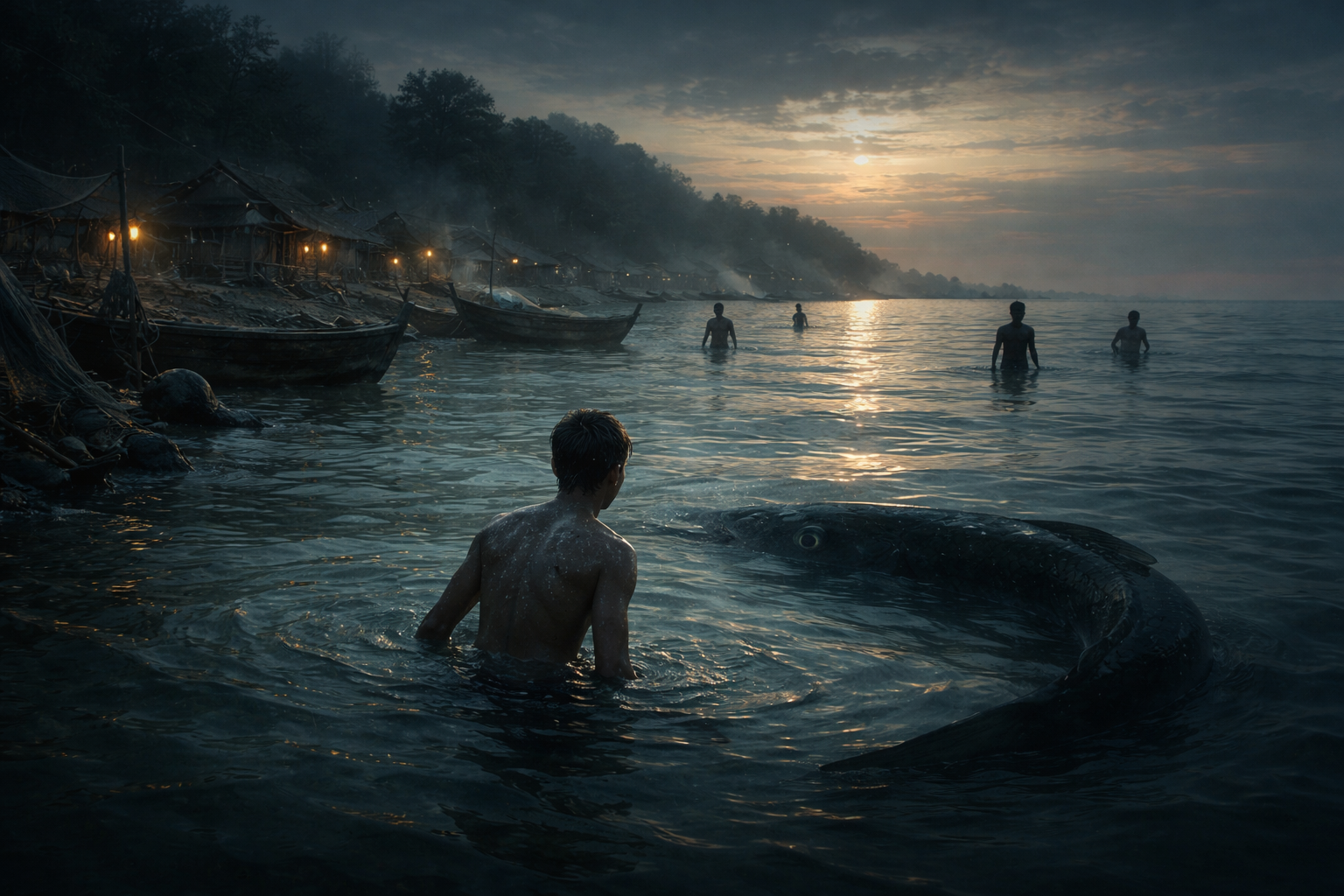 彼は海から上がろうとした。その瞬間、魚の姿が消えた。潜ったのか、溶けたのかは分からない。ただ、水だけがわずかに動いたという。
