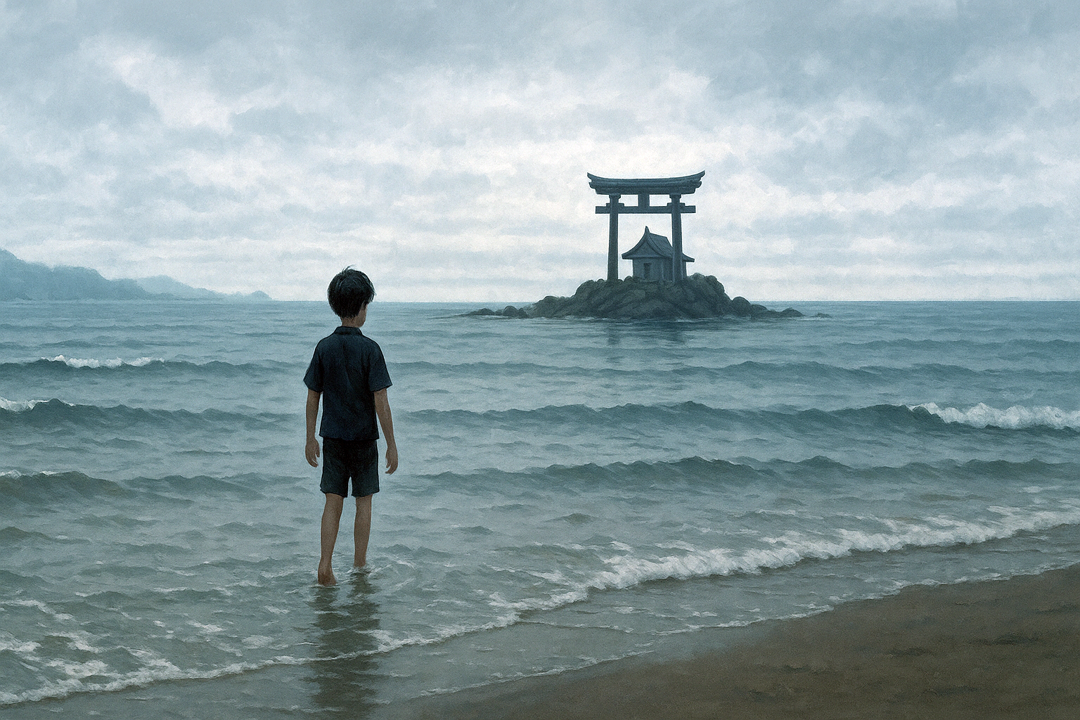 さらに、時折別人のような口調で話すようになった。私は一度だけ、それを思わせる場面を見たことがある。子供会の祭りの帰り道、兄さんがビーチから三百メートル先の孤島の神社まで、息継ぎもせずに歩くように海中を進んでいったのだ。その神社は漁師たちが水難避けを祈る場所だった。