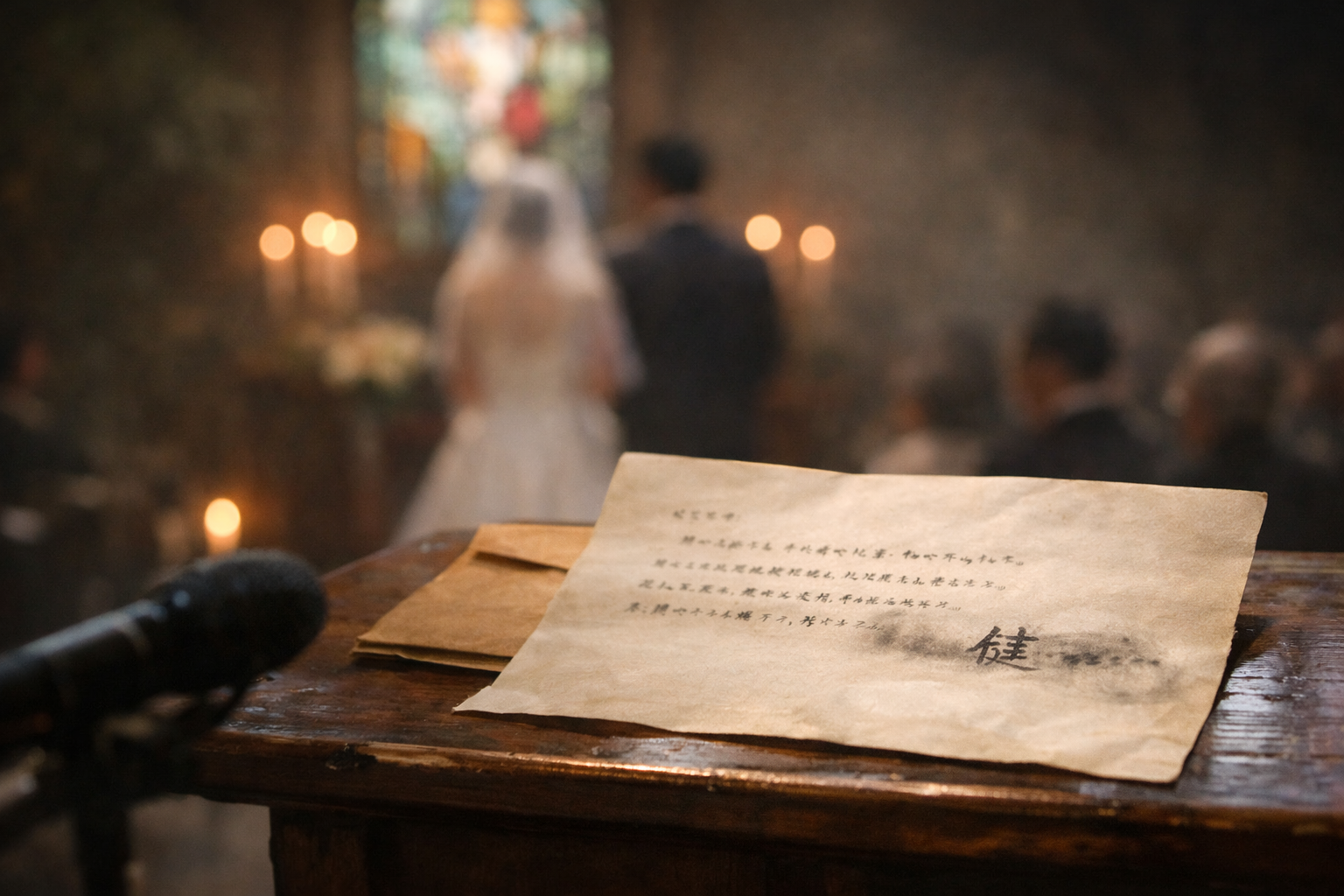 郊外の小さなチャペルだった。木立に囲まれ、午後の光がステンドグラスを透かして床に落ちていた。予定通り、誓いの言葉が交わされ、指輪がはめられ、式は粛々と進んだ。