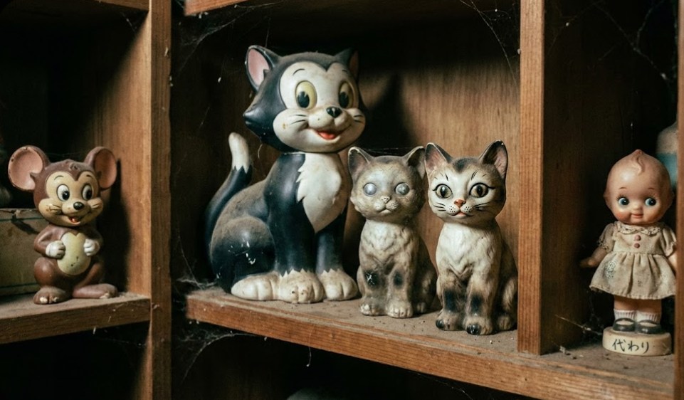 彼女は物置の棚を見た。並んでいたはずの猫のフィギュアが消えている。代わりに、小さな猫が一体、置かれていた。見覚えのない顔だった。体は小さいが、目だけが妙に鋭い。その目が、こちらを向いている気がした。