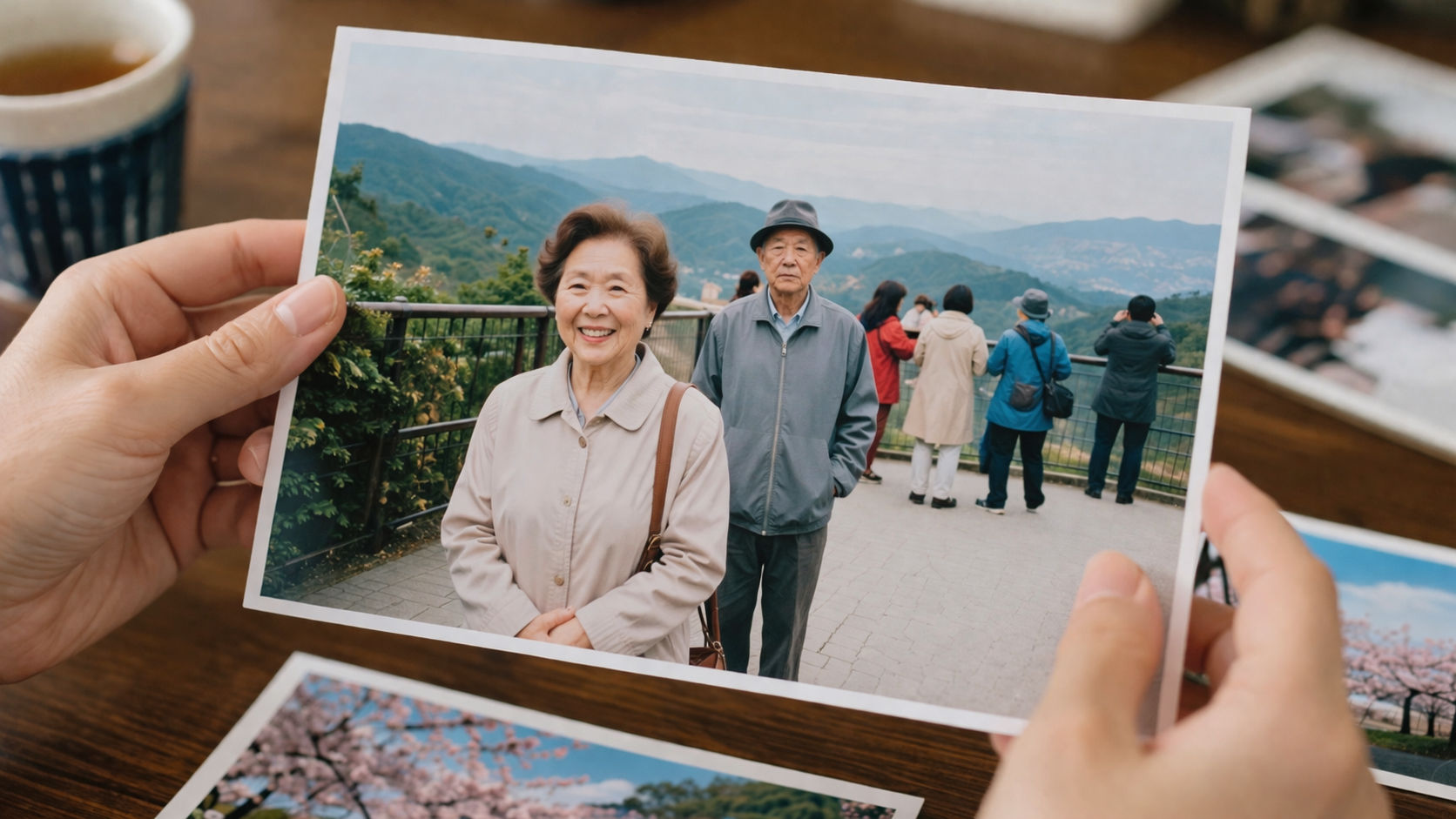 温泉街の通り。川沿いの足湯。桜の並木。土産物屋の軒先。どれも、旅先で撮るような写真ばかりだった。そして、ほとんどの写真に祖母が写っていた。少し照れたような笑顔で、どれにも同じように立っていた。