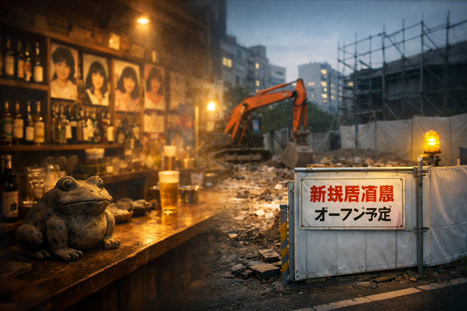 一瞬、胸の奥が冷えた。私も、その店で飲んだ記憶がある。カウンターの端に、埃をかぶったカエルの置物。壁一面の古いポスター。終電を逃して、二人で始発まで時間を潰した夜。
