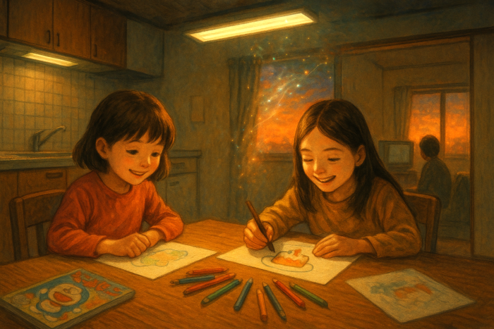 あの日、私はきよみちゃんの家の台所のテーブルに並んで座り、二人でコロコロコミックを読んでいた。蛍光灯の光が少し黄色く、机の上の紙に落ちていた。ページからインクの匂いがした。