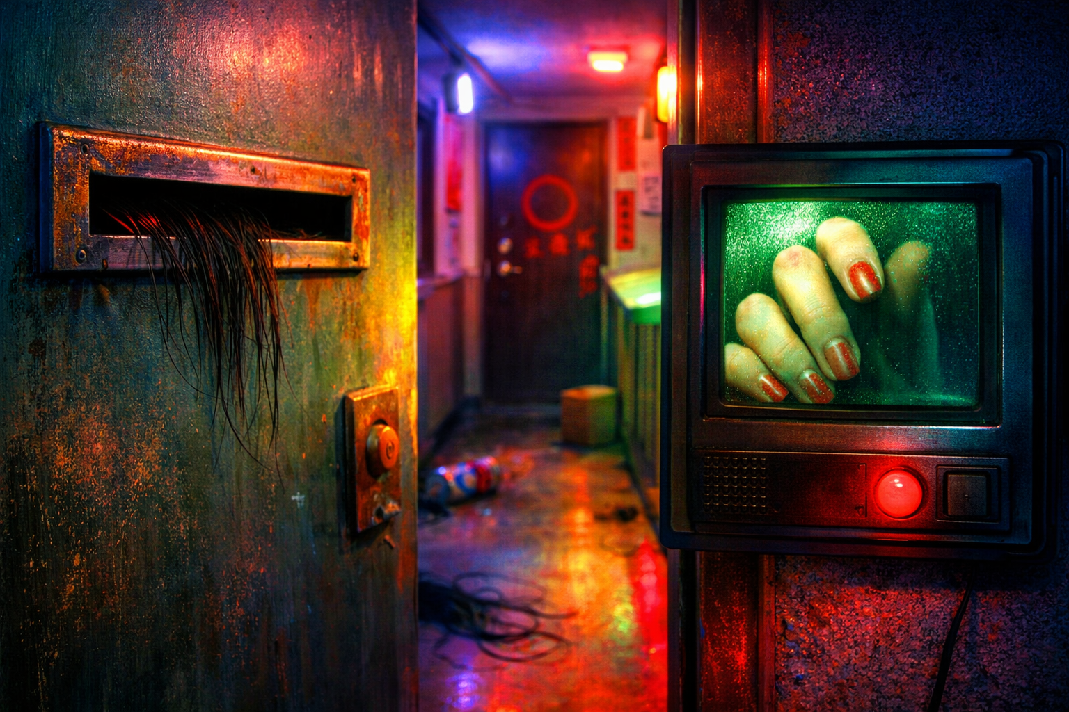 以降、異常は加速した。腐敗した缶詰、ゴキブリ、錠剤の山。モニターに映るのは、ざんばら髪の女が舌の上で錠剤を転がす様子だった。吐き出し、また飲み込み、郵便受けに詰める。その動作を何度も繰り返す。顔はほとんど映らない。だが視線だけは、常にこちらを向いている気がした。