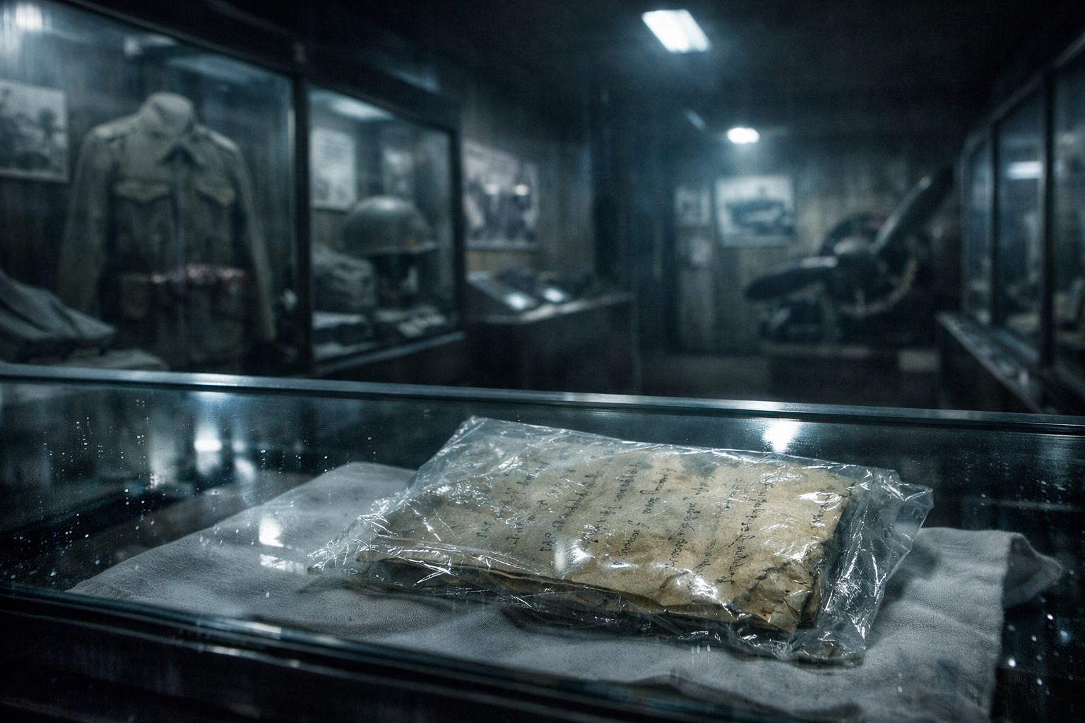 奥まった場所に置かれた、小さなガラスケース。中には、紙の束のようなものが収められていた。白い布の上に置かれ、さらに透明なシートで包まれている。説明文はあったが、彼は読まなかった。ただ、ケース内を拭こうとして、手を伸ばした。