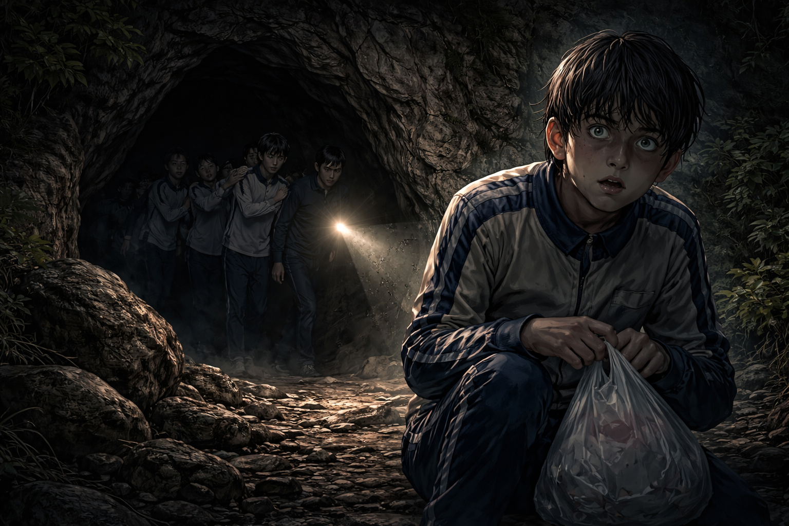 前の人の肩をつかみ、数列になって中へ入る。光源は教師の懐中電灯だけだった。足を踏み入れた瞬間、ぬるく湿った空気が鼻と口を塞いだ。小さな羽音が耳元をかすめ、首筋が粟立つ。