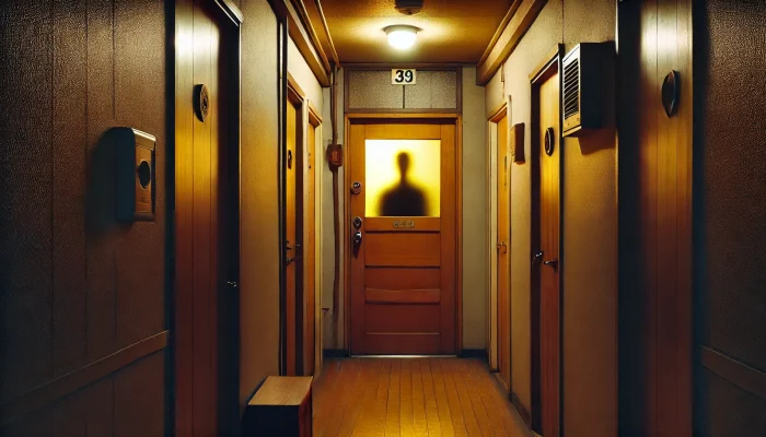 補強工事を終えたはずの扉も、ひとりきりの夜には頼りなく思えた。布団に潜っても、耳は常に廊下の気配を拾う。時計の針が零時を過ぎた頃、必ずといっていいほど「コツ、コツ」と靴音が訪れた。止まる位置は決まって玄関の前。