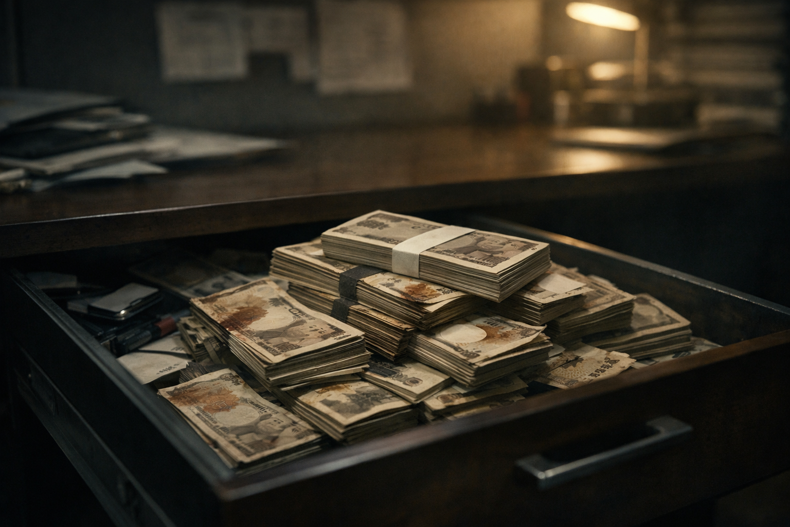 封筒にも入っていない札束が、雑に、しかし量だけは異様に多く。新札と古い札が混じり、湿った紙の匂いがした。
