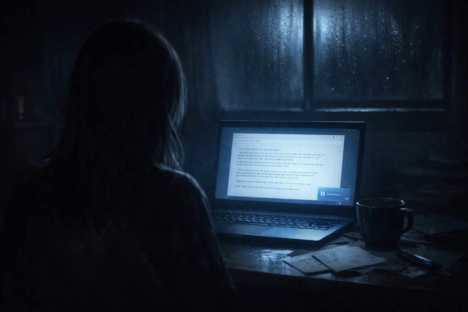 夜更け、部屋の照明を落とし、机の上のノートパソコンだけが青白く光っていた。湿気を含んだ空気が肌に張りつく季節で、窓は閉め切られていた。受信音は鳴らない設定だったが、画面の隅に小さな通知が現れた瞬間、なぜか彼女はすぐにそれに気づいた。