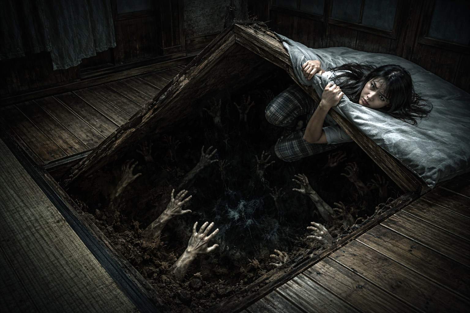 私の部屋は、築五十年以上の古い家の二階にあった。夜になると柱や梁が低い音を立て、家全体が息をしているように感じられた。特に雨の日はひどい。湿気を含んだ畳が沈み、部屋が沼の底に沈んだような圧迫感に包まれる。