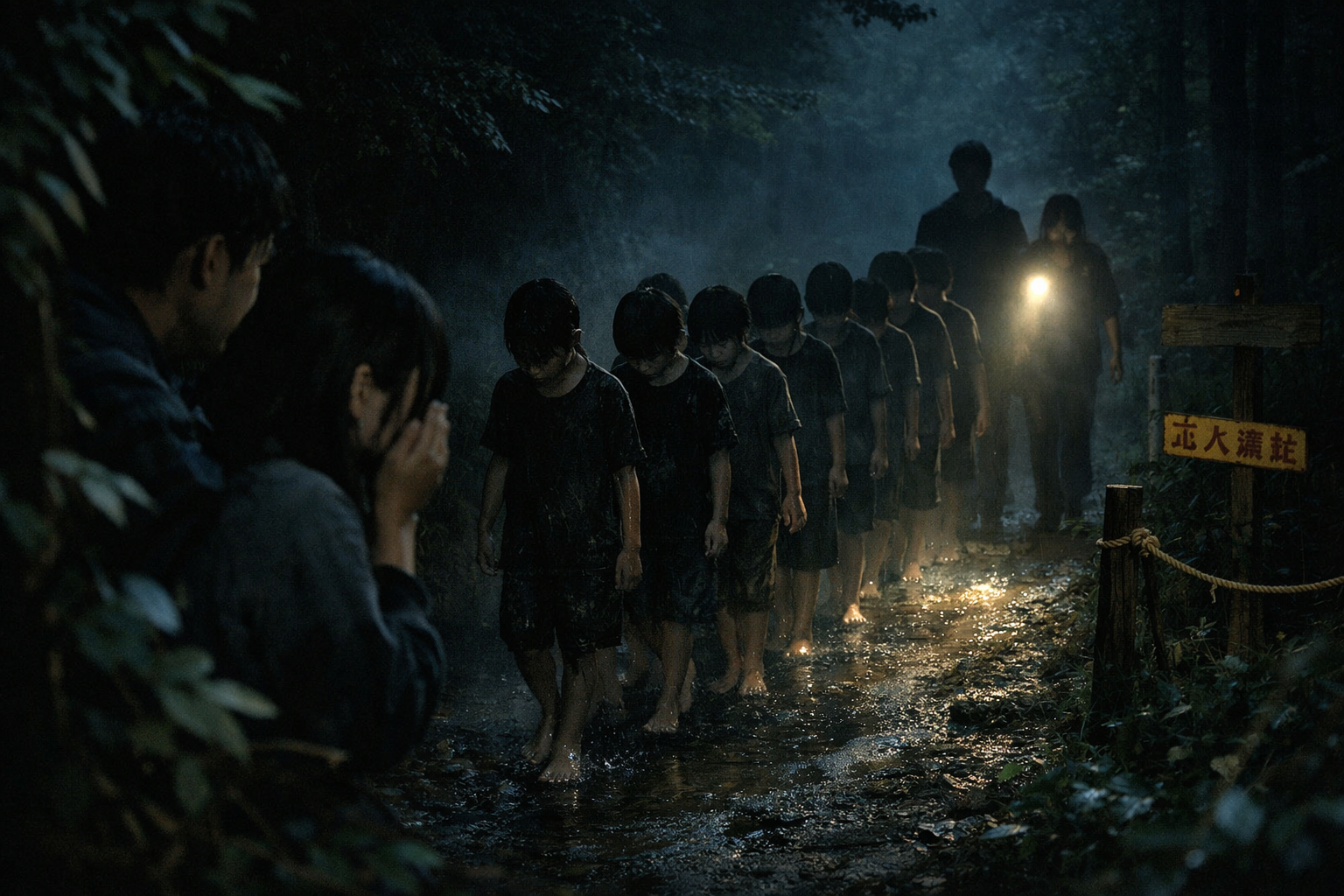 リーダー格の社会人男性が、懐中電灯の光を顎の下から当てて冗談めかして言った。その顔には、子供を脅かすことを楽しみにしている嗜虐的な色が隠せていない。
