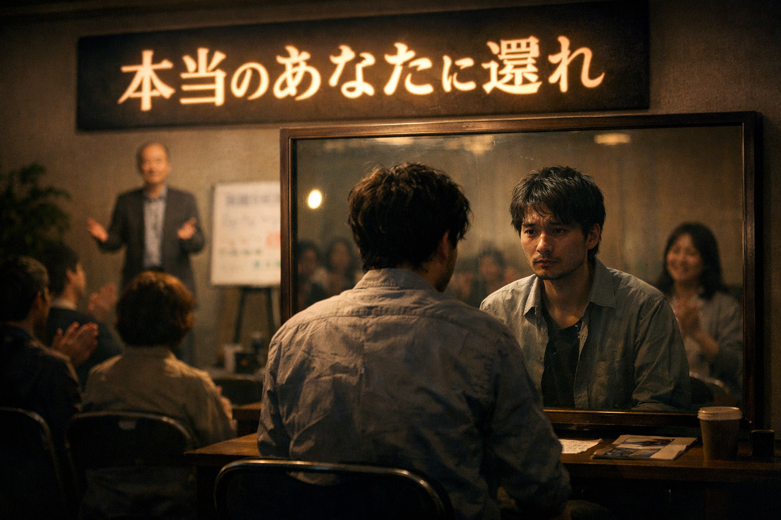 説明会では成功例が紹介される。三千万の借金を抱えた男性が、全てを手放し団体の共同住宅に入った後、「本当の仲間」を得たという証言。鬱病で休職していた女性が、家族と距離を置いたことで「自分を取り戻した」という体験談。
