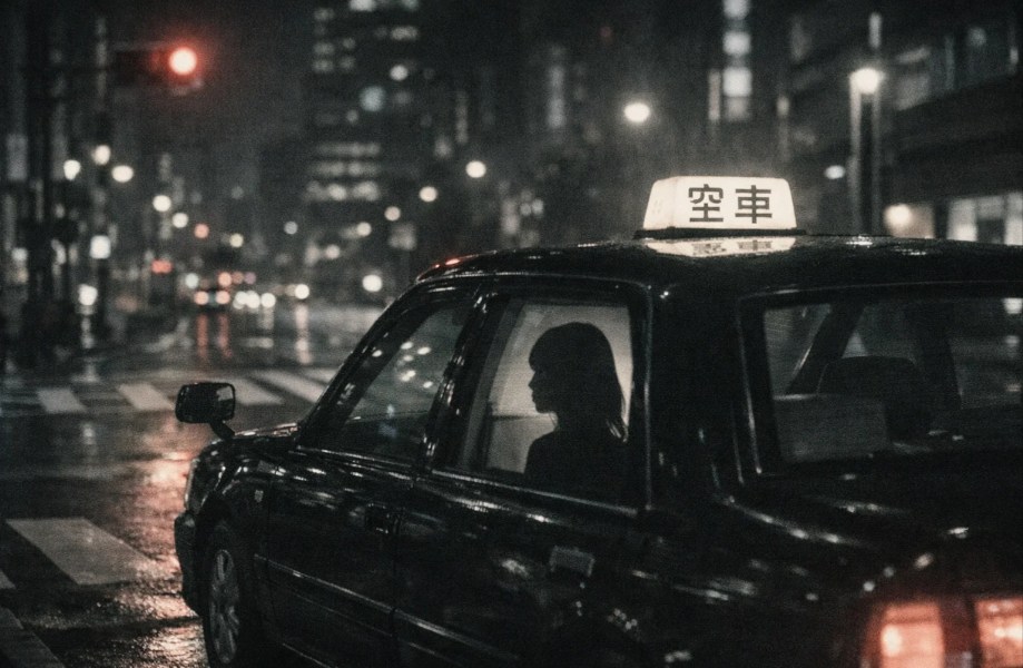 俺はぼんやり車内を見た。タクシーって、外から車内が妙に見える。運転席の後ろの透明な板とか、メーターの光とか。