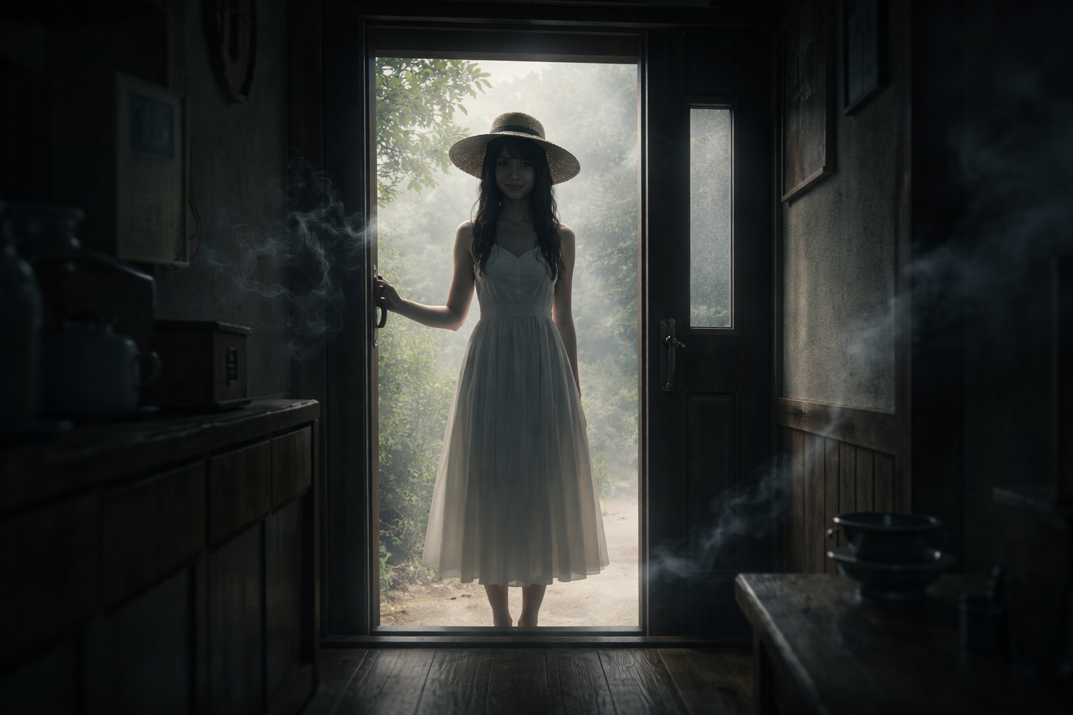 覗き穴の向こうに、女が立っていた。白いワンピースに麦わら帽子。蚊取り線香の煙の向こうで笑っていた、あの顔。