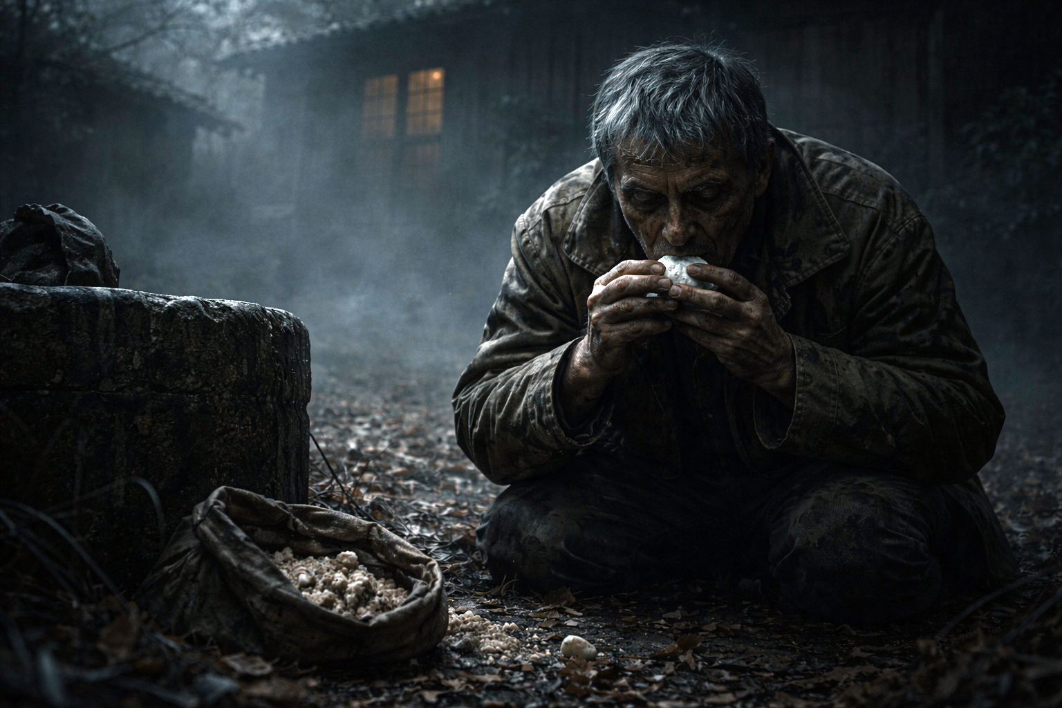 冬に入ってから、奇妙なことが始まった。大叔父が、裏庭の古井戸のそばで何かを食べるようになった。小さな塊を口に運び、黙々と噛む。祖母が止めても聞かなかった。