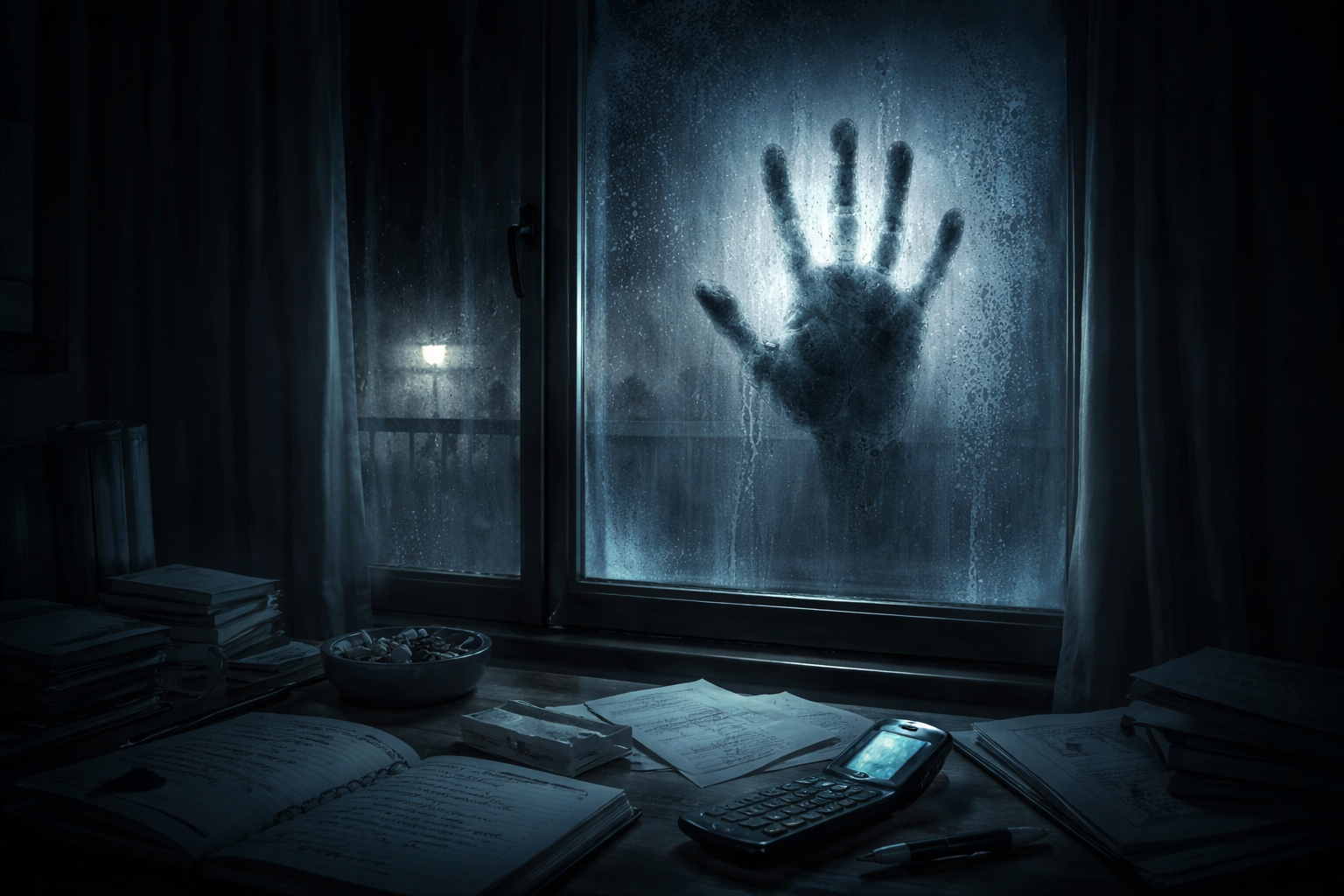 昨日、夜勤明けで部屋に戻ったとき、窓ガラスに手形が残っていた。外側ではない。内側だ。