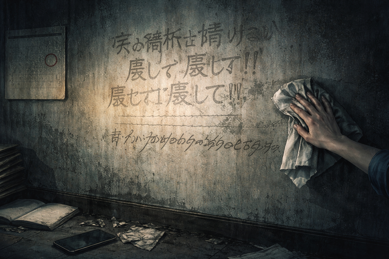 引っ越し前、雑巾で壁を拭いたら、驚くほど容易く消えた。消えた途端、夢の残滓まで拭き取られたように頭が軽くなった。