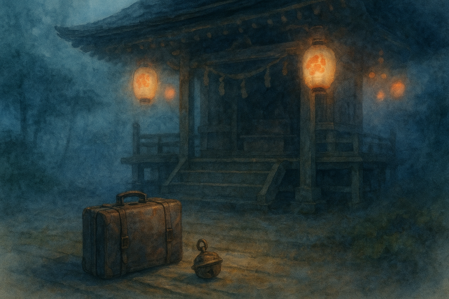 私はバッグと鈴と箱の位置を頭に入れ、扉を閉めた。木のきしむ声が、骨の隙間を通って抜ける。外の光は白く、境内の砂は湿って濃い色をしていた。靴を履く時、紐が指にまとわりついた。泥の感触で、子供の頃に神社の裏で遊んだ記憶が唐突に戻った。倒れた石灯籠。草の上で拾った、小さな鈴。私はその時、指に切り傷を作った。