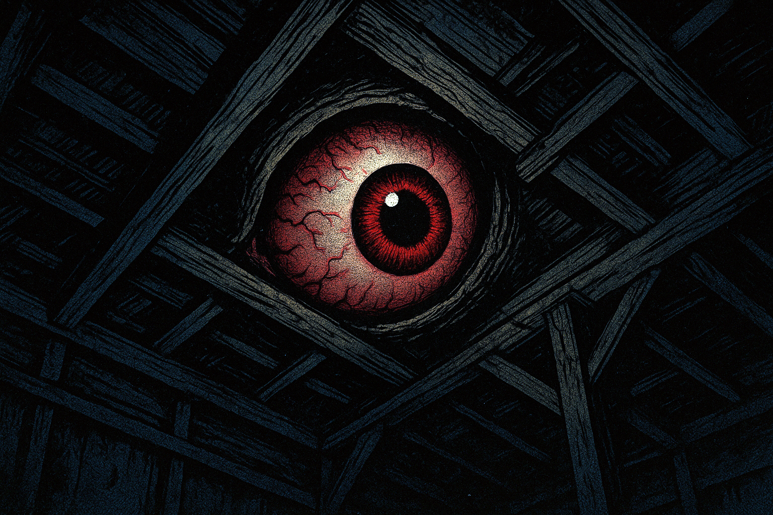 私は天井を見上げた。竿縁天井の薄い板目には、蝋燭の光が届かず、暗い木目だけが不気味な模様を描いている。