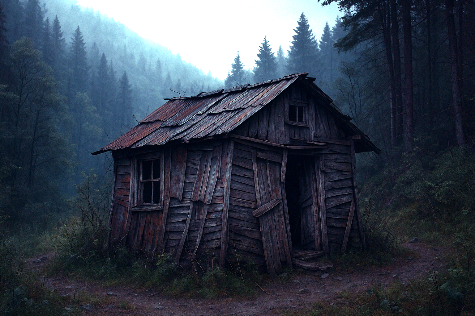 道は半ば失われていた。獣道は雑草に覆われ、蜘蛛の巣が顔に絡みつき、何度も足を取られた。だが、木々の切れ間にトタンの屋根が見えた瞬間、胸の奥がざわついた。生き物の匂いとは違う、澱んだ気配がそこに溜まっているように感じた。