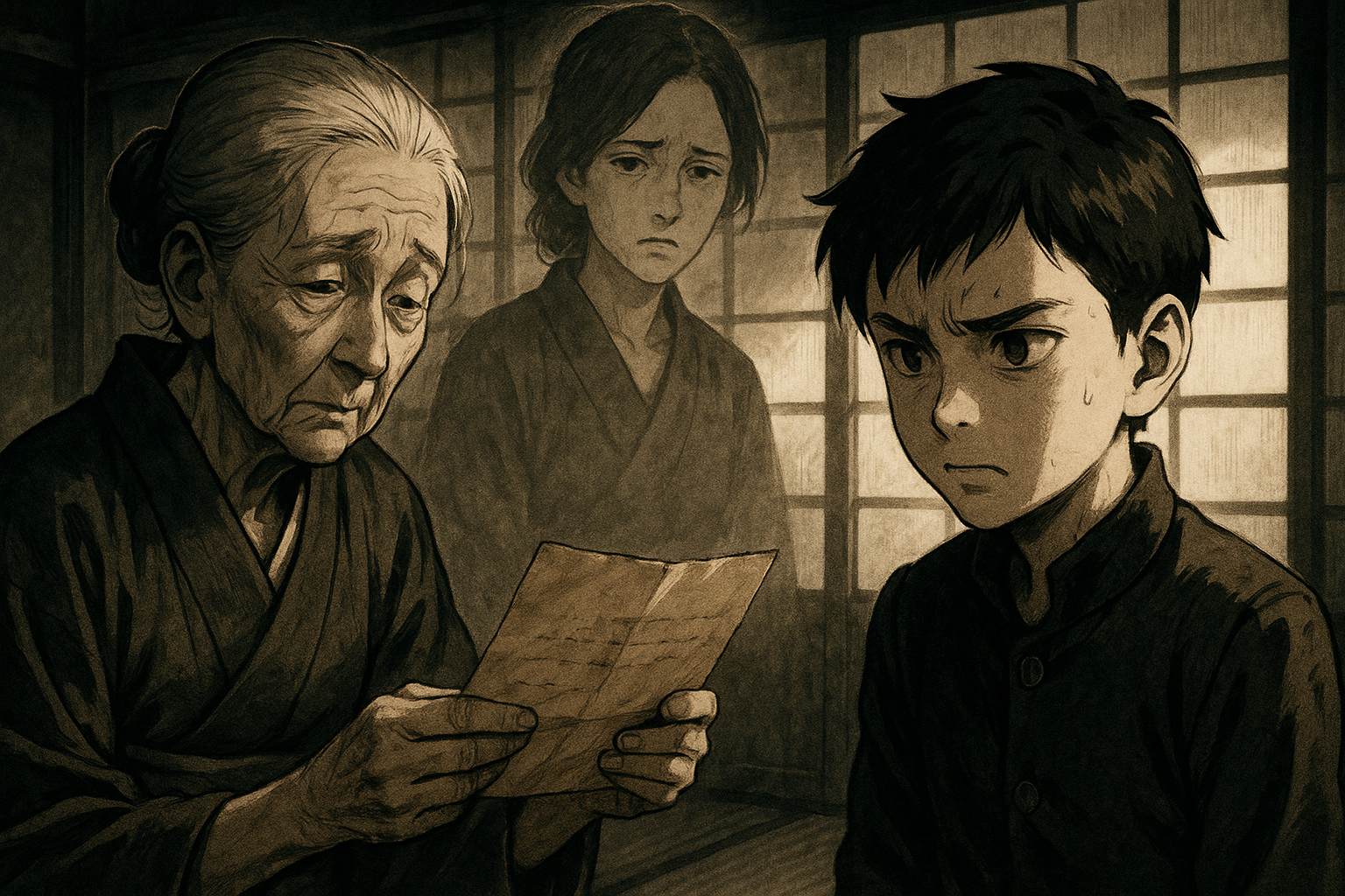 「あたしも大人になった頃だね。どうかしてたんだろうね。おっかさんに『本当はおっかさんがおとっつぁんを殺したのか』って聞いたんだ。そうしたら、おっかさんがこの便箋を見せてくれてね。お国の仕事だから、今までおまえには言えなかったけど、おとっつぁんは死んだとしても、国のために死んだんだよ、って言って……」