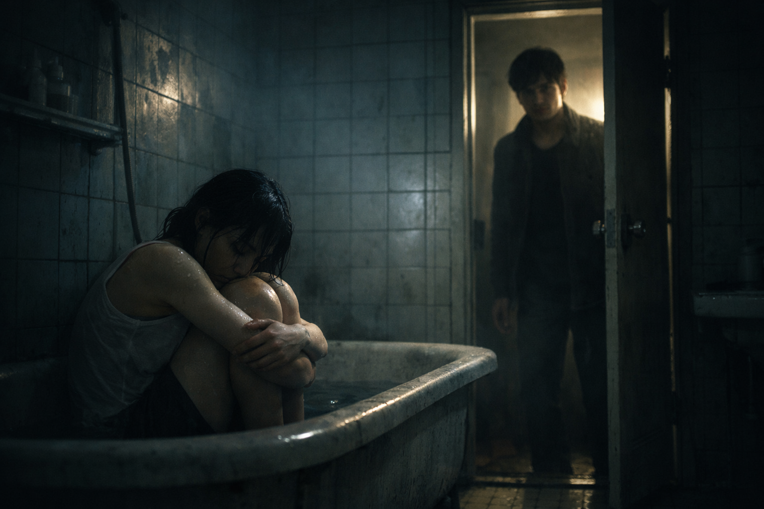 浴室は湿っていた。古いマンション特有の、洗剤とカビが混じった匂いが鼻についた。私はタイル張りの床に座り込み、膝を抱えた。時間の感覚はすぐに曖昧になった。明かりは消されていなかったが、昼なのか夜なのかも分からなかった。