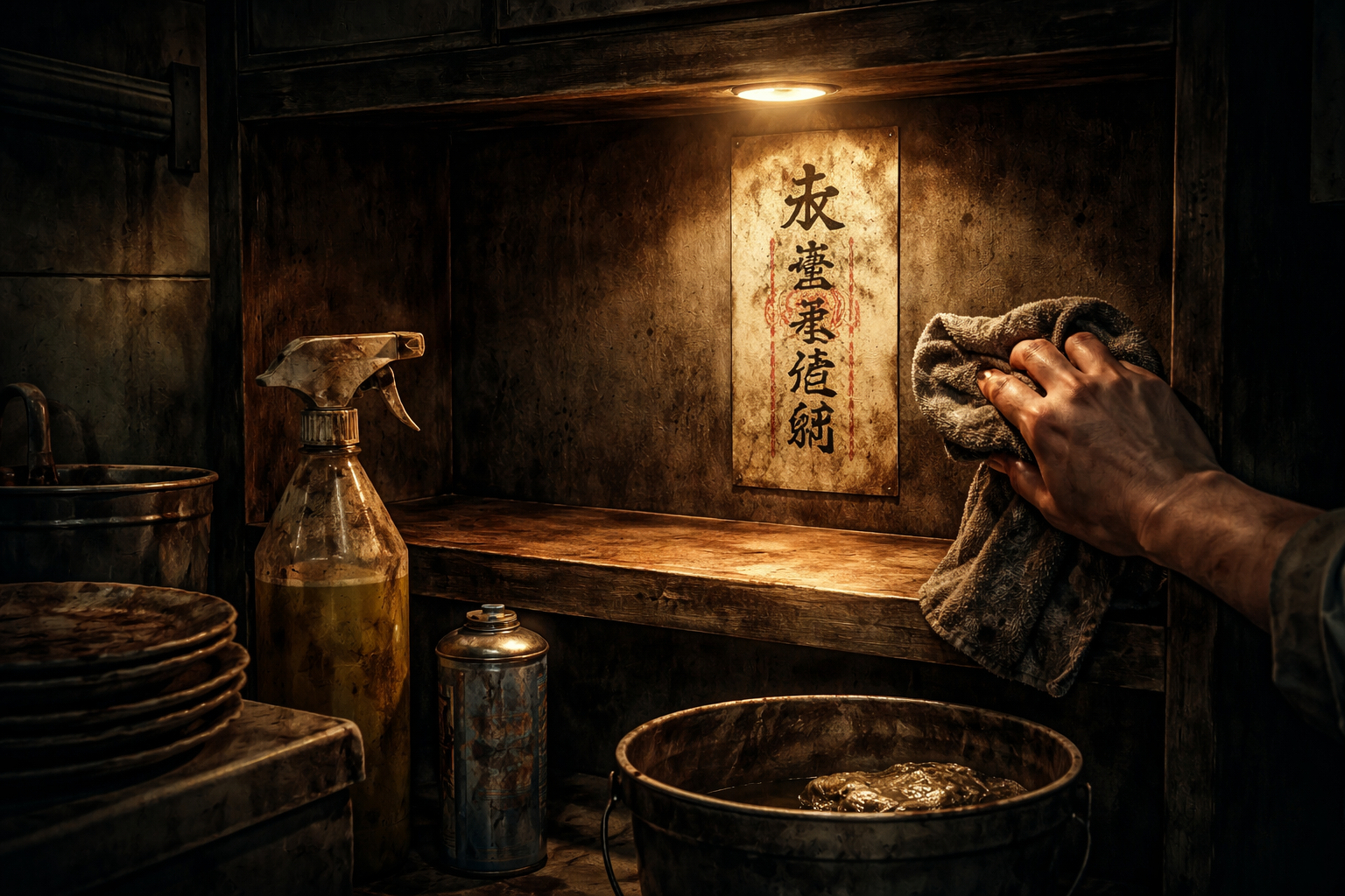 俺は主に調理場担当だったが、忙しければレジにも出る。初日に厨房へ足を踏み入れた時、床の油膜と棚の隅に固着した汚れを見て、嫌悪より先に「片付けなければ」と思った。仕事が終わると一人で残り、少しずつ掃除を始めた。雑巾に染み出す黒い汚れを見るたび、何か古い層を剥がしているような妙な感覚があった。