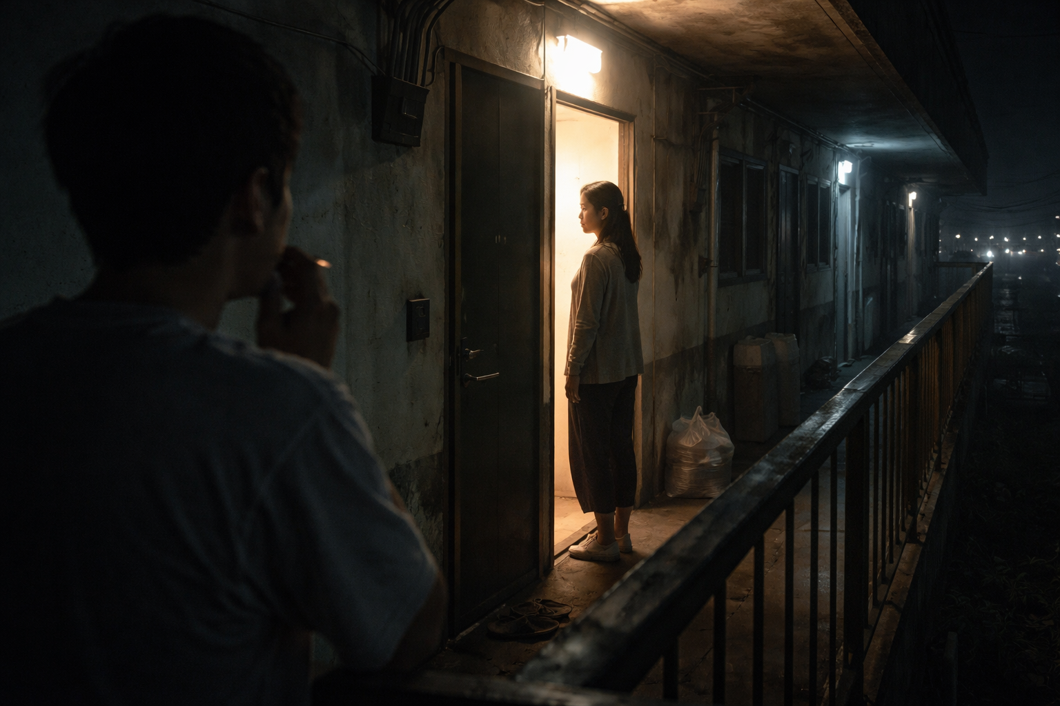 街の中心から少し外れた、古びた鉄筋コンクリートのマンション。共用廊下には雨水の黒い筋が残り、夜になると蛍光灯は半分しか点かない。窓からは線路が見える。終電後もしばらく残る鉄の匂いと、遠ざかる振動。それが妙に落ち着いた。