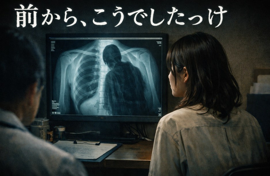 健康診断で、背中のレントゲンを撮った。医師は首を傾げた。